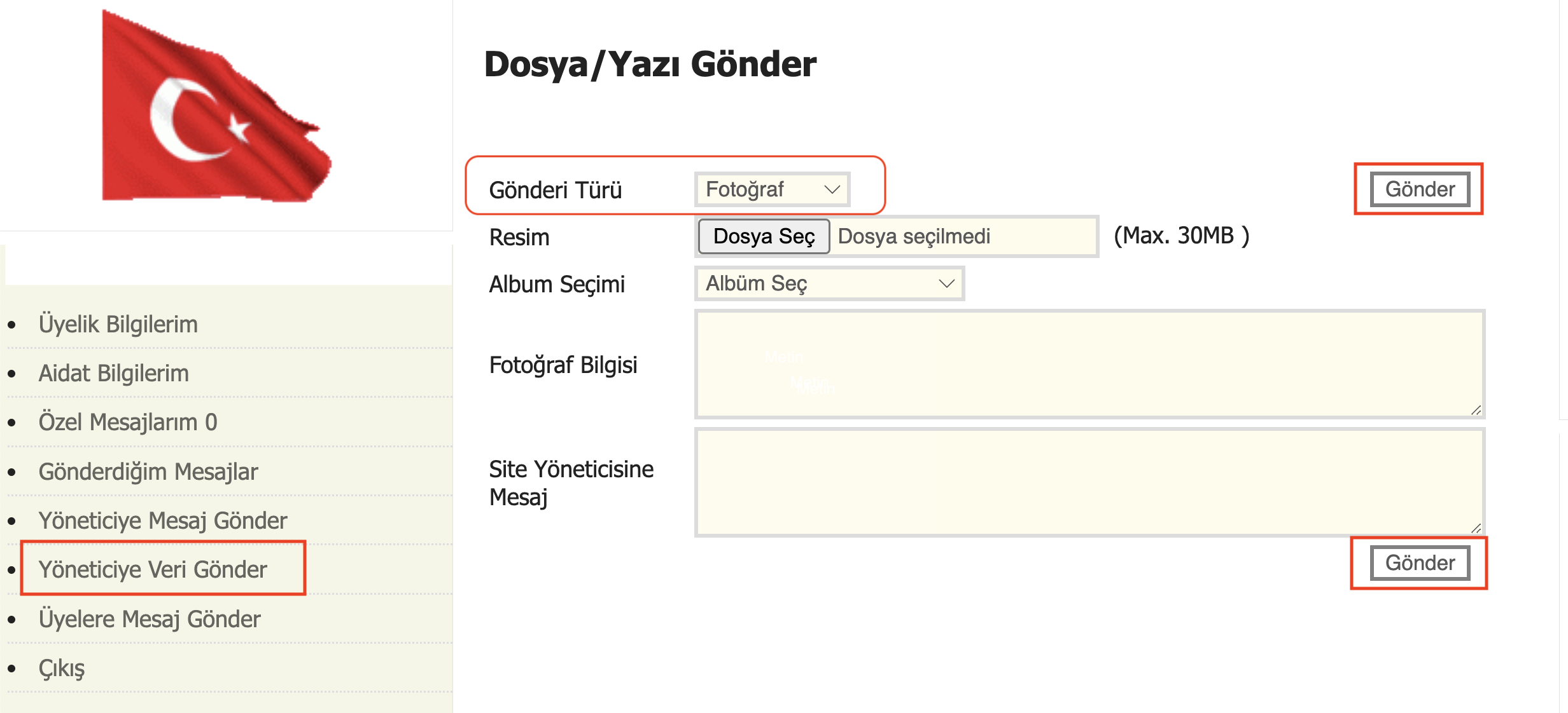 Gönderdiğiniz Fotoğraflar Foto Galeri başlığı altında Üyelerimizden Gelenler kategorisinde yayınlanacaktır. Gönderdiğiniz Haberler Ana sayfada Hhberler bölümünde yayınlanacaktır. Köşe yazısı yazmak isteyenler site yönetimi ile irtibata geçtikten sonra kendisine yetki tanımlaması yapıldıktan sonra onay gerekmeksizin gönderdiği köşe yazıları otomatik olarak sayfanın sağ tarafında yayınlanacaktır. Yapılmasını istediğiniz Duyurular sayfanın sağ tarafında duyurular bölümünde kayan yazı şeklinde yayınlanacaktır.