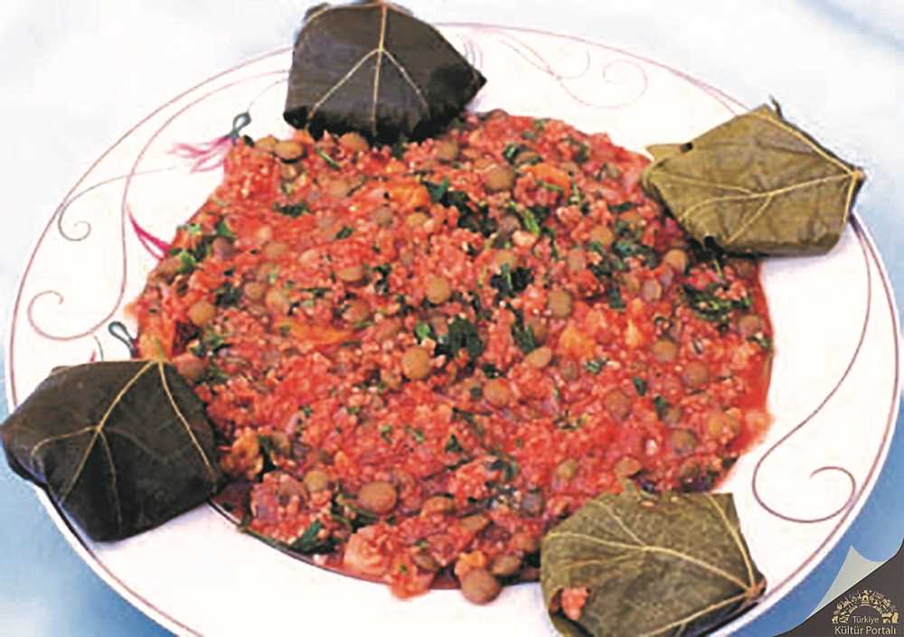 Koyun kuyruğu küp şeker büyüklüğünde doğranır. Bir tavada kavrularak yağı eritilir. Kevgirden süzülerek yağından ayrılır. Sıcak olarak tavada dövülür. Islatılmış mercimekler hazırlanır, süzülür soğan küp şeklinde doğranır. Bir çay bardağı sıvı yağda kavrulur. İnce ince doğranmış pastırmalar soğanın üzerine ilave edilir. Haşlanmış mercimek yıkanmış yarma eklenerek 1,5 su bardağı sıcak su ilave ederek dövülmüş kıkırdak ve baharat eklenir. Pilav kıvamına gelince altı kapatılır maydanoz (kıyılmış) eklenerek sıcak servis yapılır. Not: Üzüm yaprağıyla bohça şeklinde sarılarak dolma gibi de yenebilir.